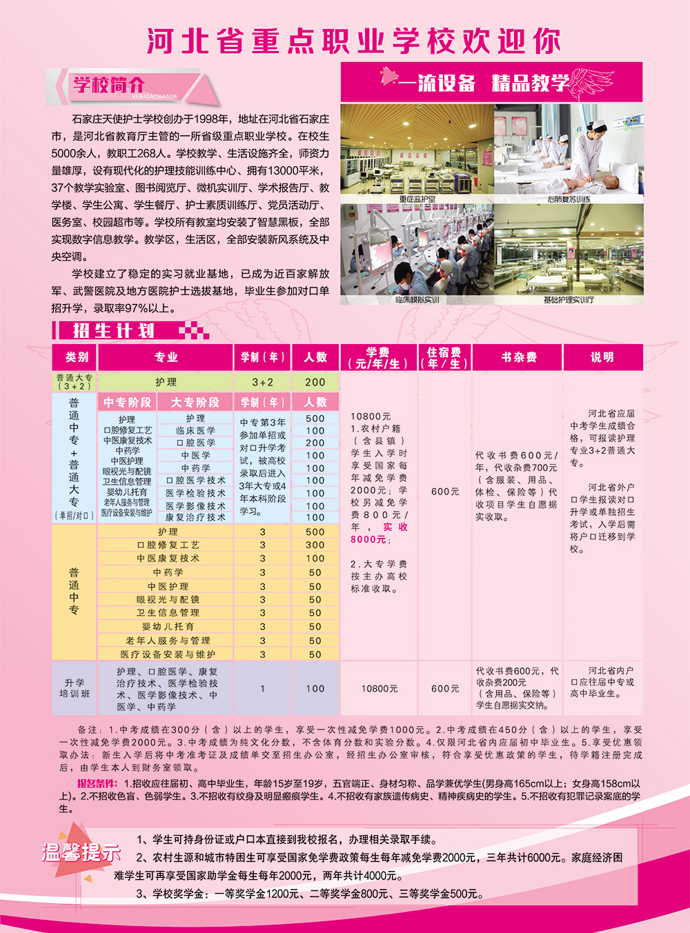 新乐初三毕业生:石家庄天使护士学校2024春季招生报名开始了