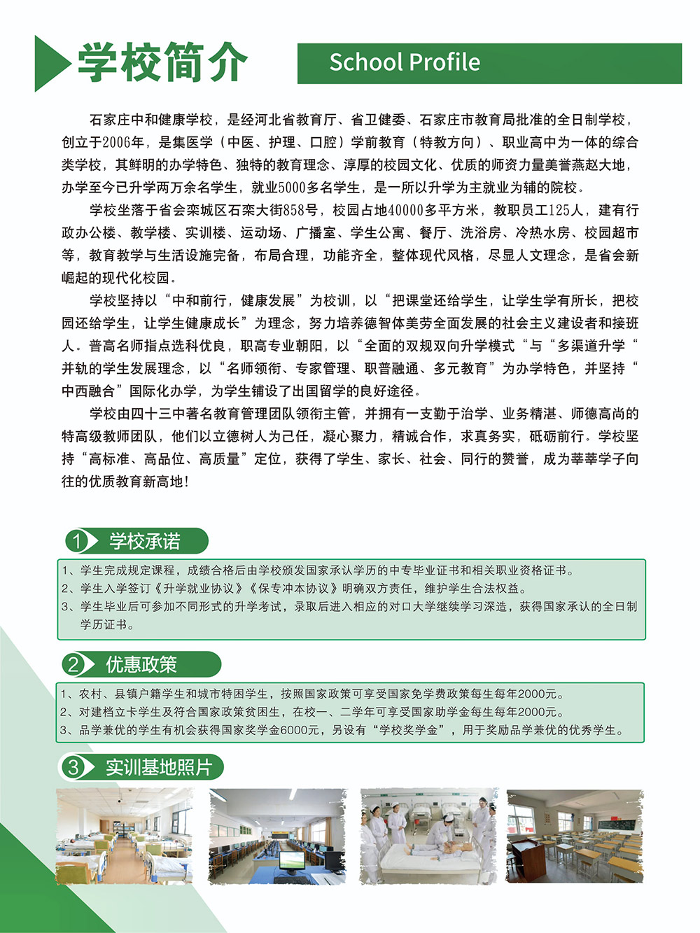 新乐初三毕业生:石家庄中和健康学校招生简章