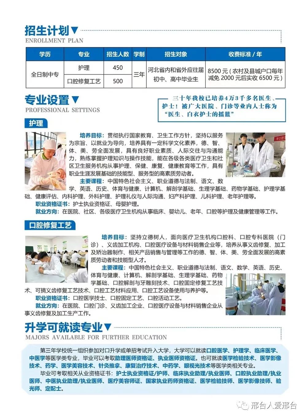 石家庄现代医学中等专业学校:春季招生进行中,专业有:护理专业,口腔医学专业,名额有限,抓紧时间抢占名额。