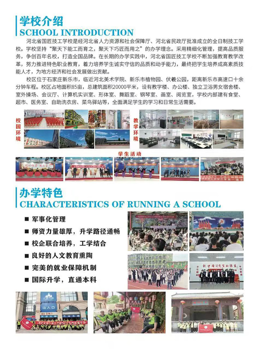 新乐初中毕业生:河北国匠技工学校2024招生简章